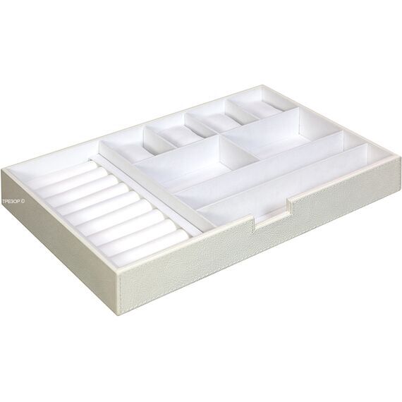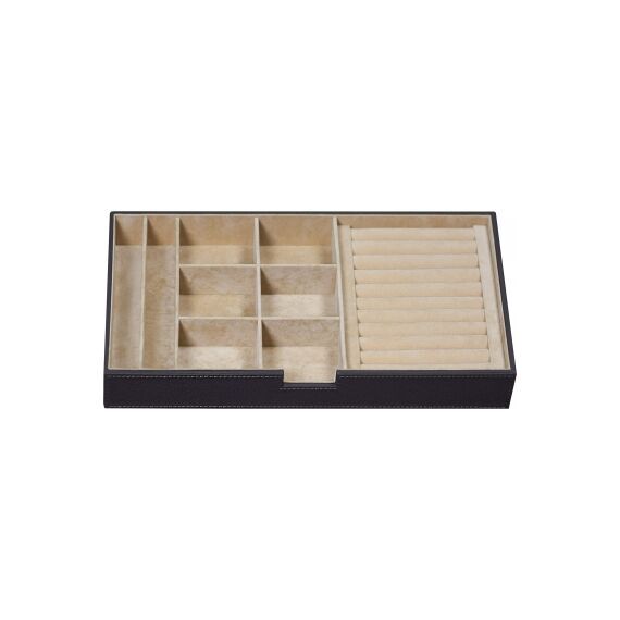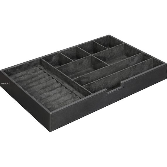 Ювелирный модуль на 2 ящика полностью в кожаной отделке разработан для отдельного хранения в гардеробной или туалетной комнате, с последующей установкой на штатную полку в сейф.