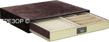 2. Выдвижные ящики с лотками для хранения ювелирных украшений. Каждый лоток с заданной "раскладкой" может быть легко вынут из металлического подвижного каркаса (приобретается отдельно).