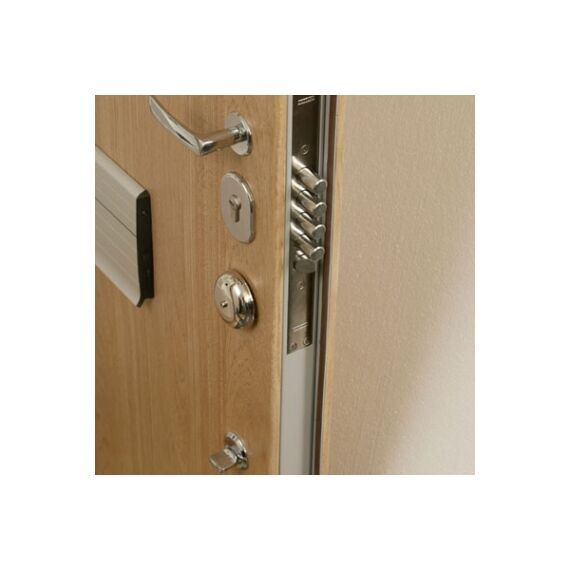 Двери производятся с разными замковыми группами. Указана стоимость за базовую комплектацию, свободно со склада в Москве, в индивидуальном деревянном коробе, готовую к монтажу, включая ключевой замок Mottura 52763 (5 ключей в комплекте), стандартную ручку и глазок, L-образный порог, износоустойчивые панели MDF на выбор (без рисунка) и наличники с обеих сторон. Стоимость изделия в других варианты отделки и запирания по запросу.