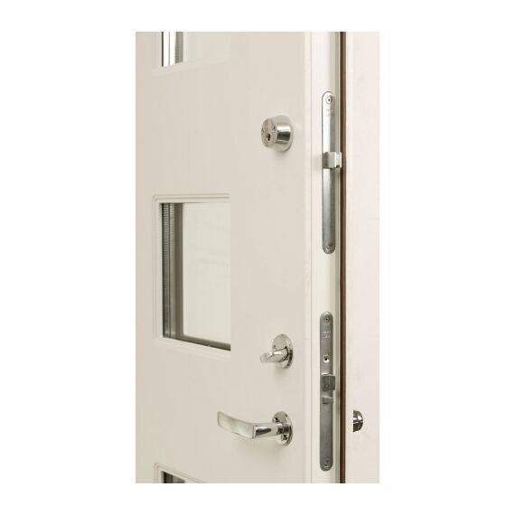 Двери производятся с двумя разными замковыми группами - Mottura или Abloy. Замковая группа Mottura построена на базе замка серии 85771 со специальным профилем, что исключает возможность несанкционированного копирования.