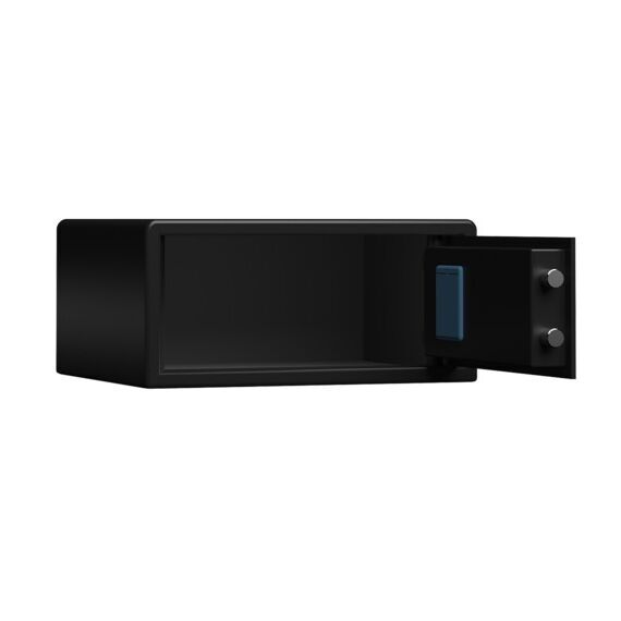 Компактный мебельный сейф Mono5 Black вобрал в себя все наиболее востребованные преимущества моделей личных и гостиничных сейфов серий H200/P200 и Combi5. Наружные габариты, близкие к золотым пропорциям сейфов серии 200, слегка уменьшились, что ещё более упростило задачу размещения этого сейфа в мебели. Электронный замок, аналогичный устанавливаемому на личные премиум сейфы серии Combi5, полностью моторизованный, напрямую приводит в движение два ригеля диаметром 20 мм.