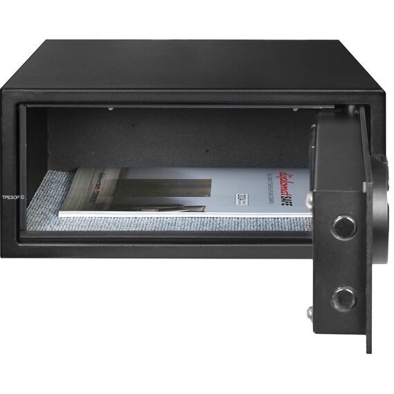 Конструкция сейфа облегчёна: корпус изготовлен из стали толщиной 2 мм, а дверь толщиной 5 мм. Предусмотрены два варианта окраски, чёрный или рубиново-красный. За счёт этого удалось заметно снизить как вес, так и стоимость. Подготовлен для крепления за заднюю стенку к стене дома или к мебели через днище. Для большего комфорта имеется светодоидная подсветка интерьера.