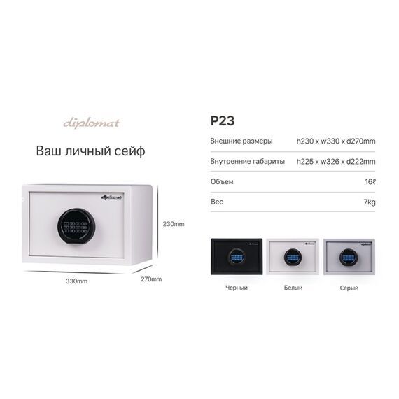 Модель P23 умещается везде и уместен повсюду! Отличный сейф для дома, офиса и гостиницы.