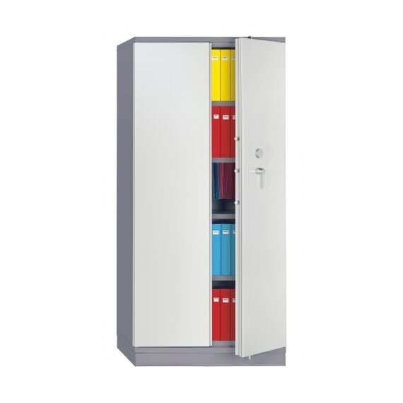 Офисные архивные сейфы Diplomat серии DC5203 (с ключевым замком) обеспечивают защиту любых, в том числе крупноформатных документов от огня в течение 30 минут и несанкционированного доступа. Это самый лёгкий и объёмный архивный сейф на рынке. Изготовлены из двухсторонне гальванизированной стали (исключающей появление ржавчины) и окрашены акрил - уретановой эмалью, что полностью исключает появление каких-либо следов износа. В качестве термоизолятора использован самый современный и экологичный материал с низкой удельной массой.