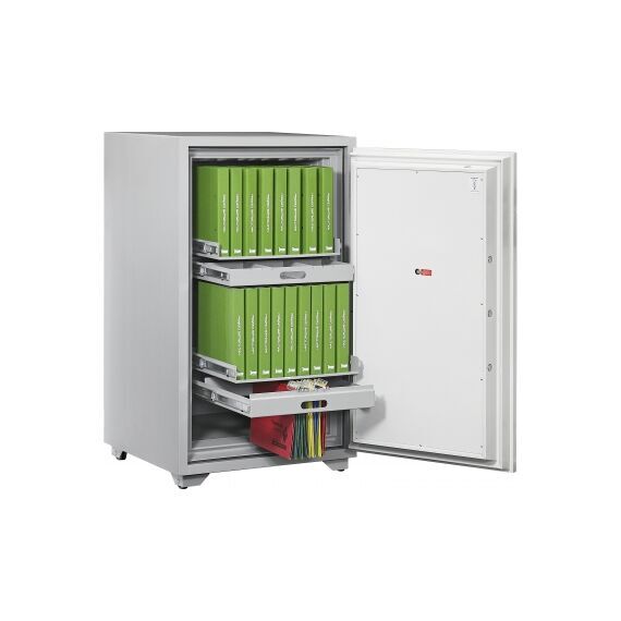 Теперь работа с надёжно защищёнными от огня документами станет намного более комфортной. Уже не надо нырять вглубь сейфа за далеко запавшей папкой и метаться от сейфа для папок к сейфу для подвесных файлов, перебегая затем к картотечному сейфу с трудовыми книжками и после кланяться сейфу для магнитных носителей. Серия Diplomat PDH - соберите идеальный сейф для работы!
