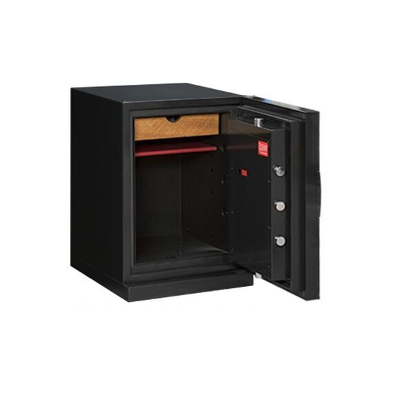 Премиум офисный сейф NEXT 6500 с дизайнерской чёрной передней панелью от компании Diplomat. Сочетает в себе традиционную огнестойкость с защитой от взлома (RSC UL, S2). Благодаря декоративным панелям высочайшего качества, сдержанному и стильному дизайну (в духе сейфов KASO) украсит собой любое помещение. Интерьер выполнен в люксовой стилистике с дополнительным отсеком для хранения драгоценностей, увеличенные ригеля, специальный противодымный уплотнитель двери и электронный замок нового поколения.