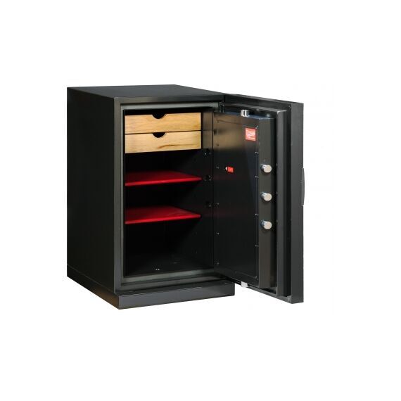 Премиум офисный сейф NEXT 7500 второго поколения с дубовой декоративной панелью от компании Diplomat сочетает в себе традиционную огнестойкость с защитой от взлома (RSC UL, S2). Благодаря декоративным панелям, сдержанному и стильному дизайну украсит собой любое помещение. Выполнены в стиле сейфов KASO, интерьер имеет дополнительный отсек для хранения ювелирки, увеличенные ригеля, специальный противодымный уплотнитель двери.
