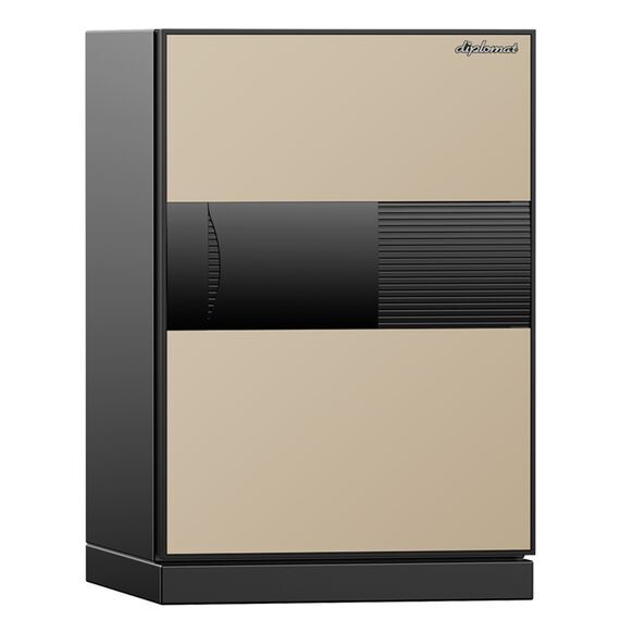 Новинка 2024 года: универсальные сейфы от пожара и взлома премиум серии Diplomat NEXT Plus с комбинированной панелью двери бежево-песочных оттенков.
