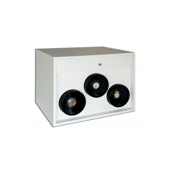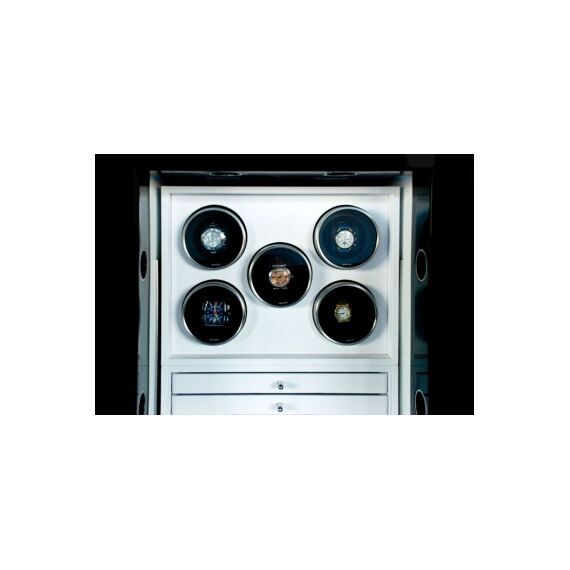 Эксклюзивный сейф для часов. Три внутренних модуля, отделанные натуральной износоустойчивой кожей, позволяют разместить до 15 непрерывно подзаводимых хронометров. Любой из модулей может быть заменён на специальные отсеки для ювелирных украшений.