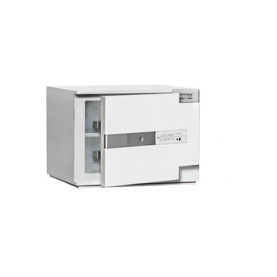 Самый компактный сейф нового семейства Bordogna BRIXIA модели UNO 1 можно без проблем установить в любом шкафу, закрепив его к стене. Несмотря на свои небольшие размеры в нём можно разместить не только папки с документами но и специальные модули для хранения ювелирных украшений. Ознакомиться с возможными вариантами внутреннего оформления можно в специальном разделе сайта, посвящённом аксессуарам. Сертифицирован на взломостойкость по классу 1 евро стандарта EN 1143. Стильный премиум сейф белого цвета.