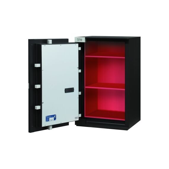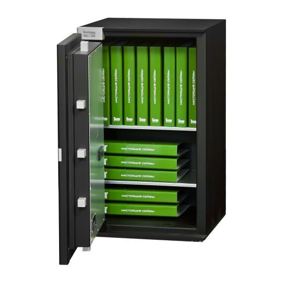 Стандартный интерьер состоит из двух полок с удобным шагом по высоте внутри сейфа, что при хранении папок с документами позволяет выбрать несколько разных вариантов их размещения. Премиум качество окраски позволяет не прятать сам сейф от посторонних глаз и не бояться за сохранность хранящихся внутри ценностей.