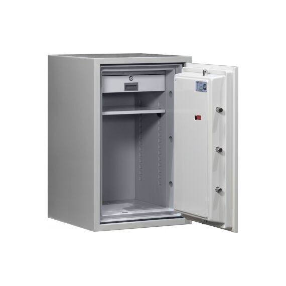 Сейф от взлома и огня серии Diplomat Security Safe: класс взломостойкости S2 (ECB-S), огнестойкость 90P (NT Fire 017/RISE). Защищенная 2х стенная конструкция сейфа S2 080 имеет крепление к полу (2 анкерных болта в комплекте), увеличенную толщину стали корпуса и двери, диаметр ригелей (22 мм) и количество активных ригелей. Окраска светло-серый RAL9002.