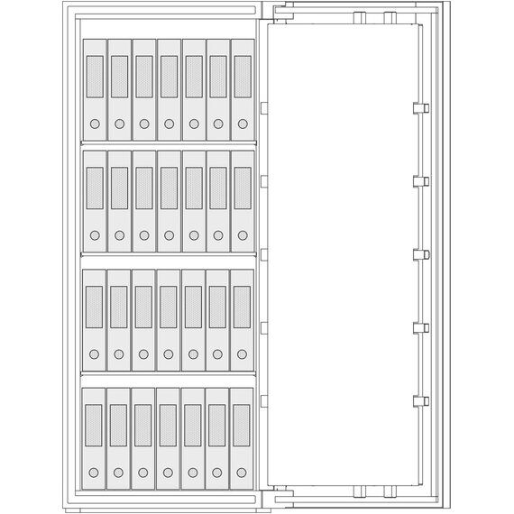 Концептуально новый размер серии BRIXIA TRE с сертифицированной защитой от взлома — полезный объем более 400 литров! Brixia TRE 8 — самый большой сейф семейства, за счёт этого он позволяет реализовать внутри все желания хозяина: рассчитан на хранение 4х рядов папок типа Корона или массива часов с автоподзаводом, а также коллекционного оружия или ценностей любой направленности.