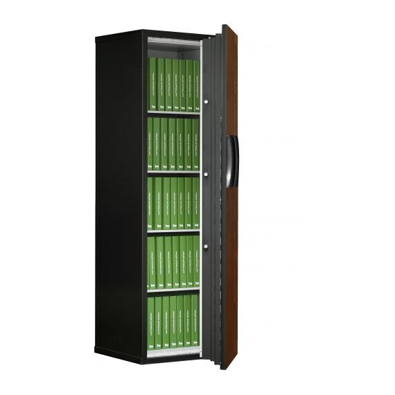 Универсальный сейф от взлома и пожара — KASO E3-350 (с декоративной панелью цвета "красное дерево"): сверхкомпактный - на полу он занимает площадь всего 60 х 60 (см), высотой чуть меньше 2х метров, он уместится в любой комнате, а внутренний полезный объём больше 300 литров. При этом каждый литр объема используется максимально эффективно за счёт грамотной организации внутреннего пространства. В дополнение или вместо стандартных полок доступны выдвигаемые ящики, разнообразные модули для хранения ключей, запираемые отделения высотой 15 см или 35 см и даже специальный модуль для хранения особо чувствительных фото-видео или дата носителей. Всё это надёжно защищено от любого катаклизма — сейф успешно прошел испытания и сертифицирован на защиту от огня в течение часа и на защиту от взлома в соответствии с требованиями класса 3 евростандарта, что делает его идеально подходящим для установки в загородном доме.