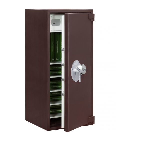 Современные электронные замки (возможен update на защищённую от любых спецслужб версию), 12 ригелей диаметром 25 мм, оригинальная система защиты от высверливания, совмещённая с блокировками и полная сертификация в соответствии с европейским стандартом EN 1143 - всё это работает на Вашу безопасность.
