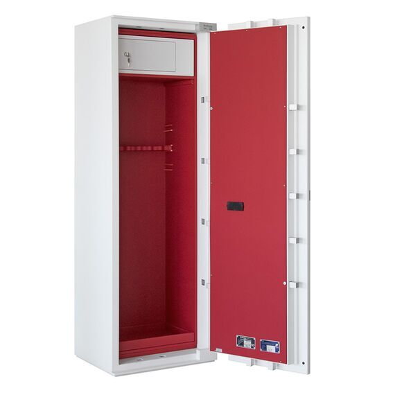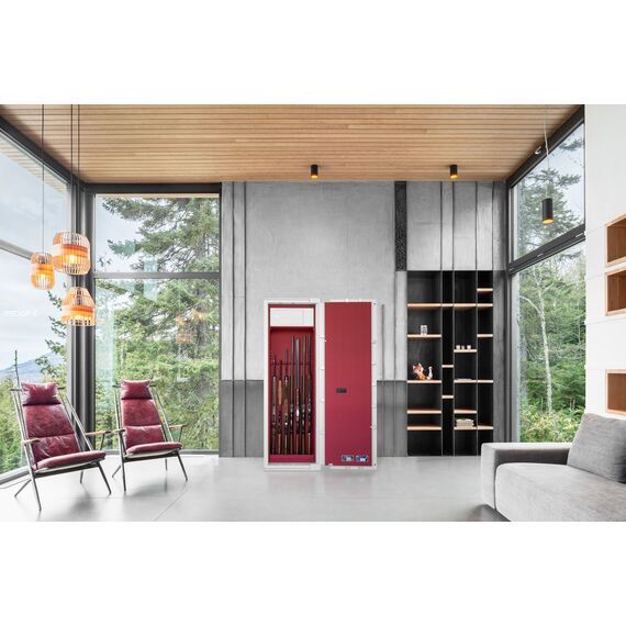 Подробнее про возможности Вы можете прочитать в нашем обзоре этой модели. Изображённый на фотографии сейф оснащён опционным базовым оружейным интерьером красного цвета
