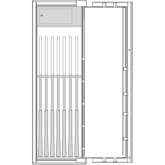 Использовать 250 литров полезного объёма, вытянувшиеся в высоту на почти 1,7 метра, более привлекательно либо для создания персонифицированного хранилища для всего на свете, либо же, строго по задумке итальянцев, под длинноствольное оружие. Именно под эту задачу было разработано две линейки специализированных заказных интерьеров, под 4 или 7 "стволов".