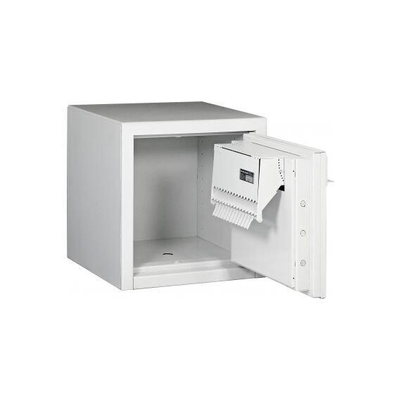 Любая конфигурация замков: ключевые или электронные, до двух замков в любой комбинации. Система анкерного крепления к полу защищает сейф от нежелательного перемещения. Возможно левое направление открывания двери.