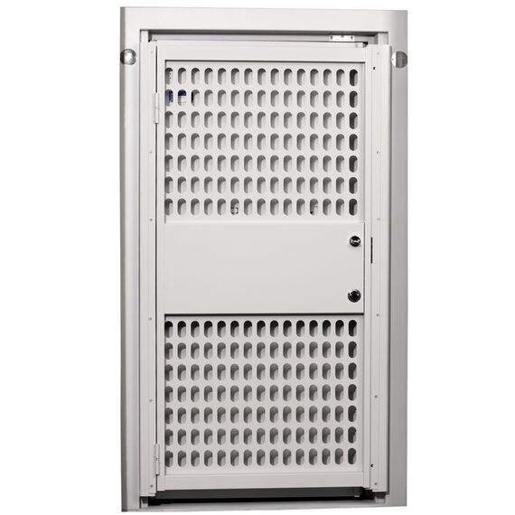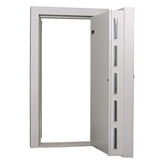 Цена приводится за базовую версию двери: стандартный размер, правое открывание, три ключевых замка класса C с парой ключей каждый, рама для монтажа под бетонирование, окраска в цвет RAL 7035, сертификация по EN 1143-1 класс XII EX CD.