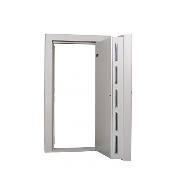Цена приводится за базовую версию двери: стандартный размер, правое открывание, два ключевых замка класса C с парой ключей каждый, рама для монтажа под бетонирование, окраска в цвет RAL 7035, сертификация по EN 1143-1 класс IX EX CD.