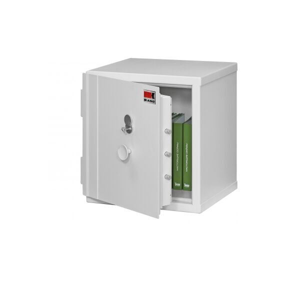 Сейф KASO E2-308L (левостороннее открыванием) оснащен полками расчитанными на хранение документов в папках A4 (количеством до 8 штук) и запираемым ящиком высотой 150 мм. Сейфы 2-го европейского класса защиты оснащаются ключевым замком Mauer с возможностью перекодирования. На заказ возможна окраска в любой цвет из палитры RAL.