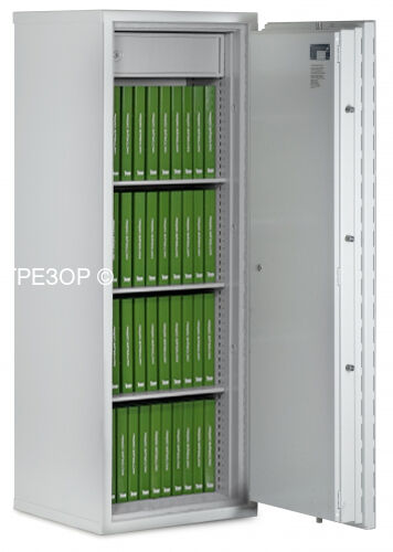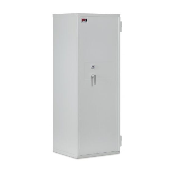 Сейф KASO PTK E2-340 с ключевым перекодируемым замком оснащен полками расчитанными на хранение документов в папках A4 (количеством до 36 штук) и запираемым ящиком высотой 150 мм.