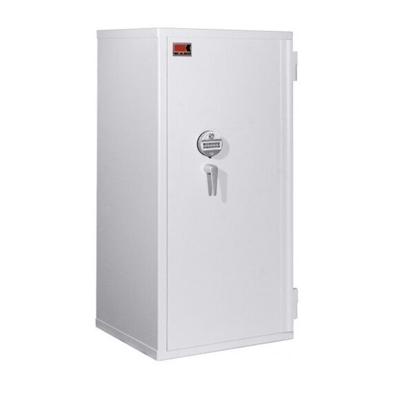 Интерьер сейфа из 2х полок рассчитан на хранение документов в папках A4 (количеством до 27 штук), а сверху установлено запираемое отделение высотой 150 мм. Сейф с электронным замком PTK E3 330E окрашен в стандартно серый (RAL 7035) цвет. На заказ возможны другие опции, а также окраска по RAL.