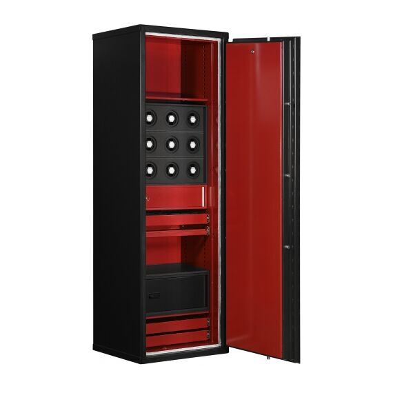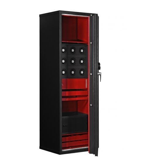 Сейф KASO PTK E3 350E в специальном исполнении. Выглядя снаружи как обычный, ничем не примечательным=й офисный сейф, внутри он оборудован таким образом, чтобы удовлетворить все потребности своего хозяина.