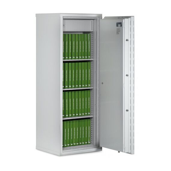 Базовая версия огневзломостойкого сейфа 4-го класса KASO PTK E4-340DK. Запирание на два перепрограммируемых ключевых замка. Другие версии могут комплектоваться любым сочетанием ключевых и электронных замков или продвинутыми системами с управлением двумя электронными замками с одной клавиатуры.