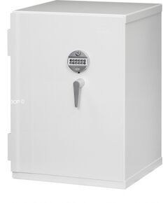Левосторонняя версия сейфа KASO PTK E2-309 с электронным замком. Стандартный цвет RAL 7035, запираемое отделение  одна полка