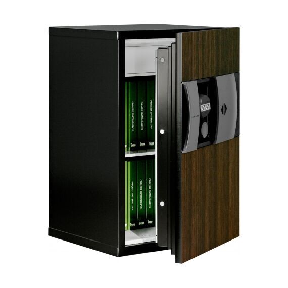 Популярный сейф для руководителя KASO E2-320 удачно смотрится и в домашнем кабинете. Передняя панель сейфа со скрывающей замки от посторонних глаз шторкой может быть окрашена в любой цвет палитры RAL или быть исполнена в фактуре берёзы, вишни, дуба, красного дерева, венге, ореха или любого другого дерева по заказу. В базовой комплектации в распоряжении владельца запираемое отделение высотой 150 мм и место для двух рядов папок, разделённое переставляемой полкой. Доступные опции: выдвигаемые ящики для картотечных задач, специальные держатели для массивов ключей, модуль для магнитных носителей или изготовленные по индивидуальному заказу вставки для ювелирных украшений.