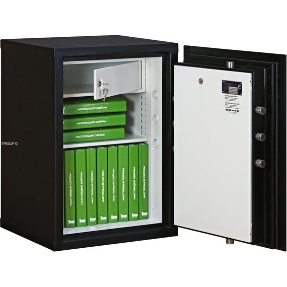 Сейфы серии KASO PTK 300 предназначены для надежного хранения ценной документации. Благодаря своим размерам и небольшому весу, сейф легко размещается в любом помещении. Модель E3-309 рассчитана на хранение внутри двух рядов папок формата A4. Базовое оснащение включает в себя одну полку и запираемый ящик высотой 150 мм.