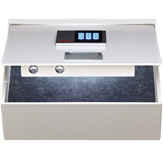 Вмещает ноутбук с дисплеем до 13.3". Моторизованный замок с упрощённым алгоритмом, даёт возможность постояльцу гостиницы использовать код от 4 до 6 цифр длиной. Для нужд специфических задач отелей отдельно может быть приобретён управляющий контроллер, позволяющий использовать систему "мастер код" для аварийного открывания и считывать из замка прокол последних 100 событий.