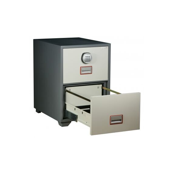 Файловые сейфы (картотеки) серии DFC 2000E (с электронным замком) обеспечивают защиту любых документов от огня в течение 60 минут и прекрасно зарекомендовали себя в Европе и США. Являются идеальным решением для хранения трудовых книжек (до 400 на один ящик *), паспортов или аналогичных документов.