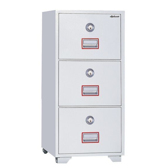 Файловые сейфы (картотеки) серии DFC обеспечивают защиту любых документов от огня в течение 60 минут и прекрасно зарекомендовали себя в Европе и США. Являются идеальным решением для хранения трудовых книжек (до 400 на один ящик *) или аналогичных документов. Модель 3000, состоящая из 3-х ящиков, может запираться как на один ключевой или электронный замок, так и иметь раздельное запирание всех ящиков.