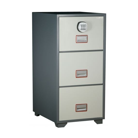 Файловые сейфы (картотеки) серии DFC обеспечивают защиту любых документов от огня в течение 60 минут и прекрасно зарекомендовали себя в Европе и США. Являются идеальным решением для хранения трудовых книжек (до 400 на один ящик *) или аналогичных документов. Модель 3000, состоящая из 3-х ящиков, может запираться как на один ключевой или электронный замок, так и иметь раздельное запирание всех ящиков.