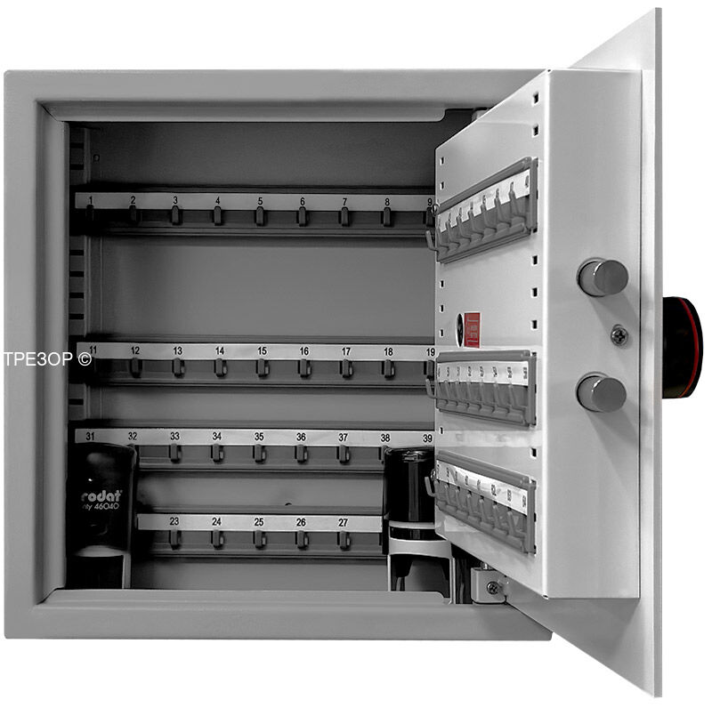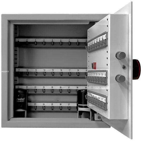 Сейф предназначен для хранения ключей (до 100 штук). Это удобное и надежное решение для офисов, автоцентров, гостиниц и банков, гос.учреждений. Рекомендуется также для использования в загородном доме и городской квартире. Прочная стальная конструкция: толщина стенок корпуса 2 мм / двери 3 мм. Планки с крючками для ключей входят в комплект поставки (см. фото).