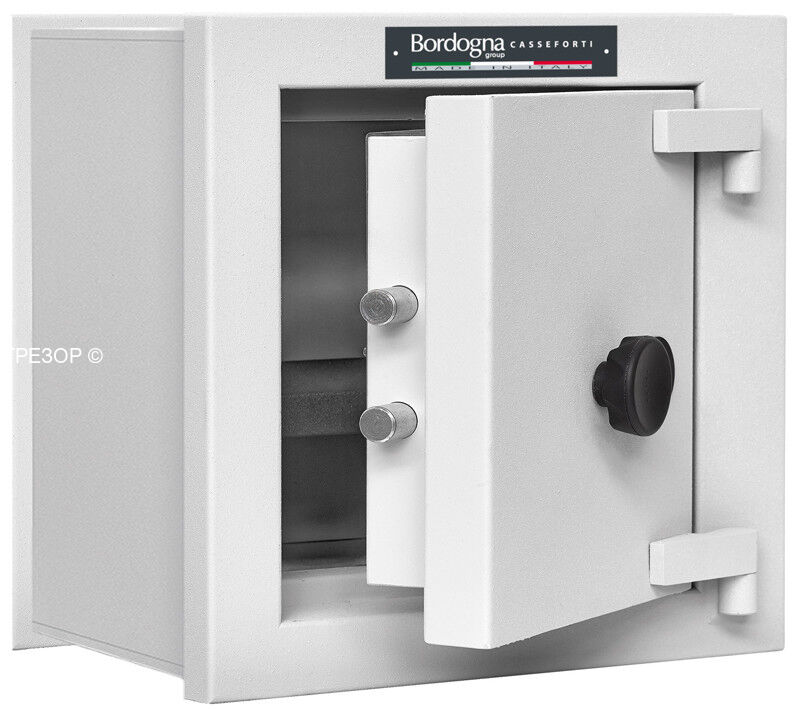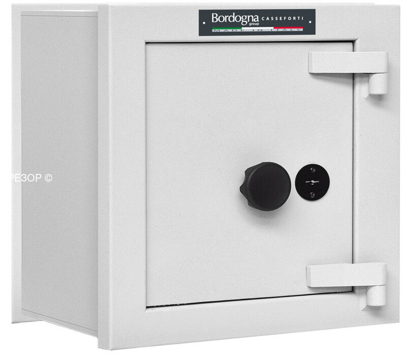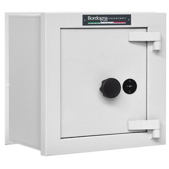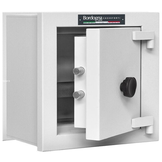 Встраиваемый в стену сейф 3-го класса взломостойкости Bordogna Andromeda 20 является фактически производной от прямостоящих моделей 4-го класса взломостойкости KUMA. Производятся на испанском заводе BAUSSA в точности по спецификации более высокого класса.
