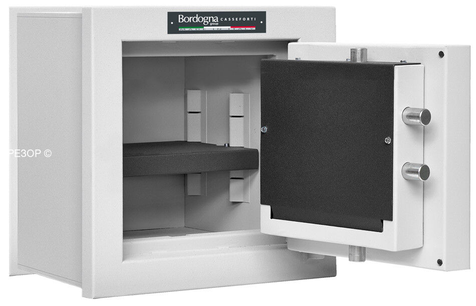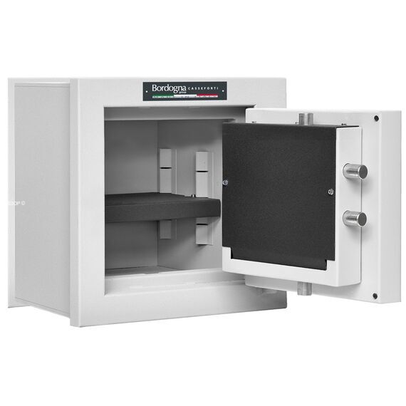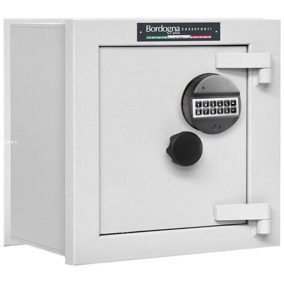 Встраиваемый в стену сейф 3-го класса взломостойкости Bordogna Andromeda 20 является фактически производной от прямостоящих моделей 4-го класса взломостойкости KUMA. Производятся на испанском заводе BAUSSA в точности по спецификации более высокого класса.