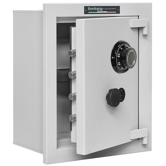 Встраиваемый в стену сейф 3-го класса взломостойкости Bordogna Andromeda 45 является фактически производной от прямостоящих моделей 4-го класса взломостойкости KUMA. Производятся на испанском заводе BAUSSA в точности по спецификации более высокого класса.