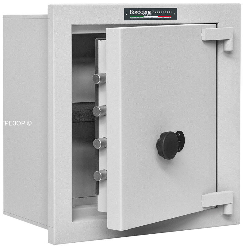 Встраиваемый в стену сейф 3-го класса взломостойкости Bordogna Andromeda 55 является фактически производной от прямостоящих моделей 4-го класса взломостойкости KUMA. Производятся на испанском заводе BAUSSA в точности по спецификации более высокого класса.