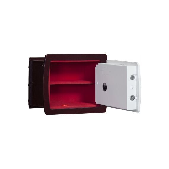 Облагороженное бархатное покрытие, съемная дверь, двойная пластина из марганцовистой стали, защищающая замок от высверливания, возможность замены типа замка. Это без сомнения лучшее и непревзойдённое изделие на рынке, флагман производственной программы стенных сейфов Bordogna.